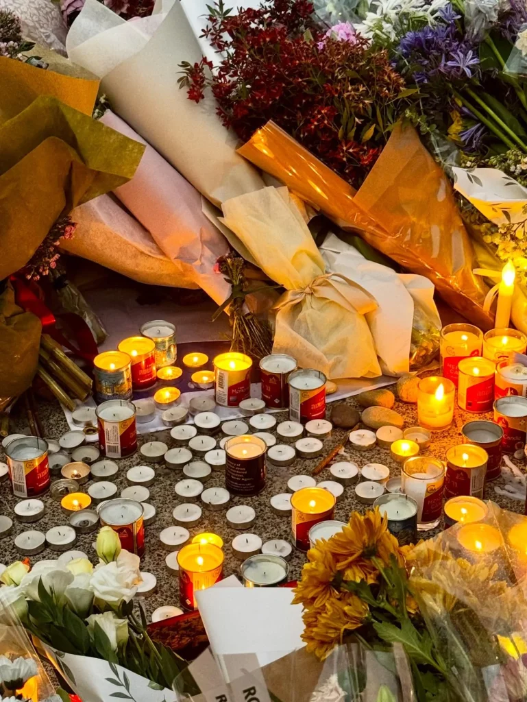 Beyond the thousands of bouquets, the memorial included hand-painted stones, teddies, cards and deeply personal items like a pair of shoes left by 10-year-old Matilda’s family.