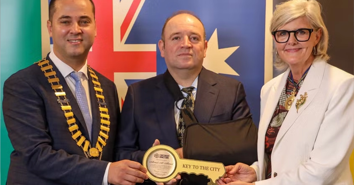Ahmed al Ahmed, 43, became the first person to receive the key to the City of Canterbury Bankstown at an Australia Day awards ceremony, more than a month after he wrestled a gun away from one of two attackers who targeted a Hanukkah celebration on 14 December.