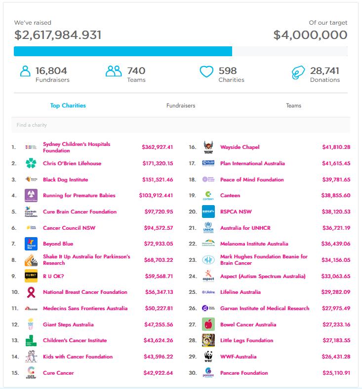 “Last year, our incredible fundraisers at Team Sydney Children’s Hospitals Foundation raised over $692,000 at City2Surf.